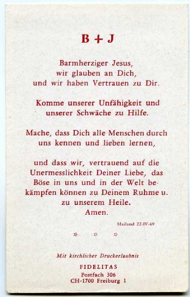 9. Januar 1972, an Fidelitas, Carouge-Genf: